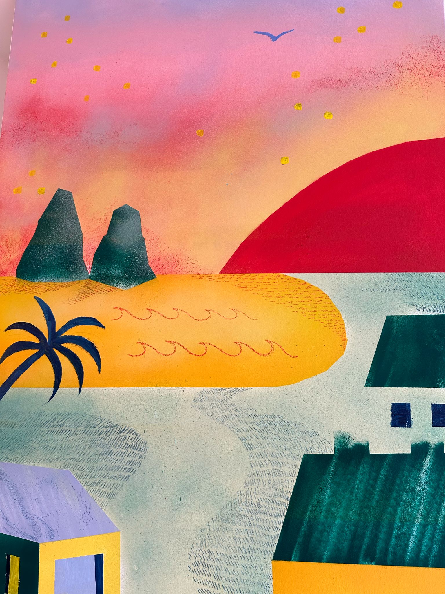 Le thème est celui de la mer et des villes du sud. Une requête : apercevoir le rocher nommé « les Deux frères », emblématique de la côte de cette ville.